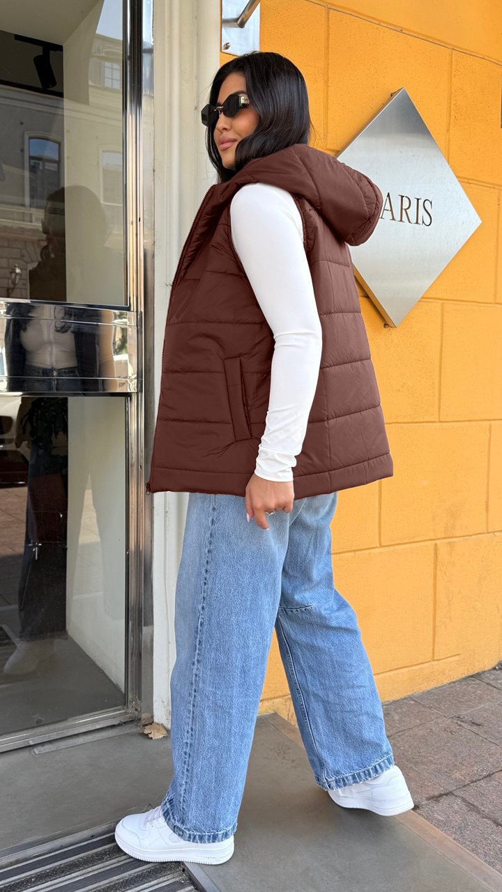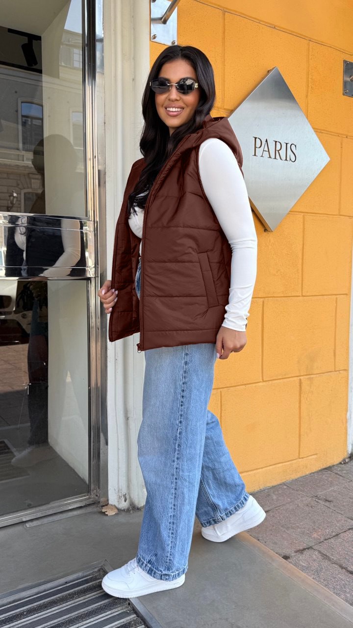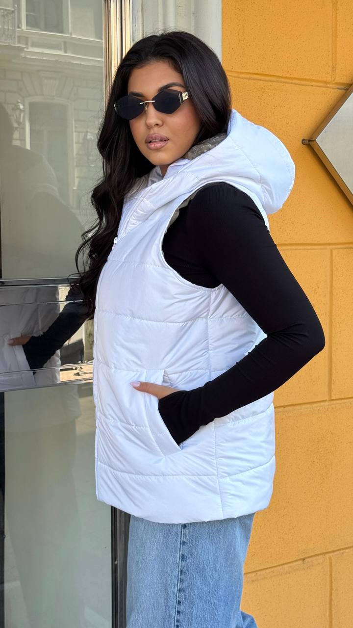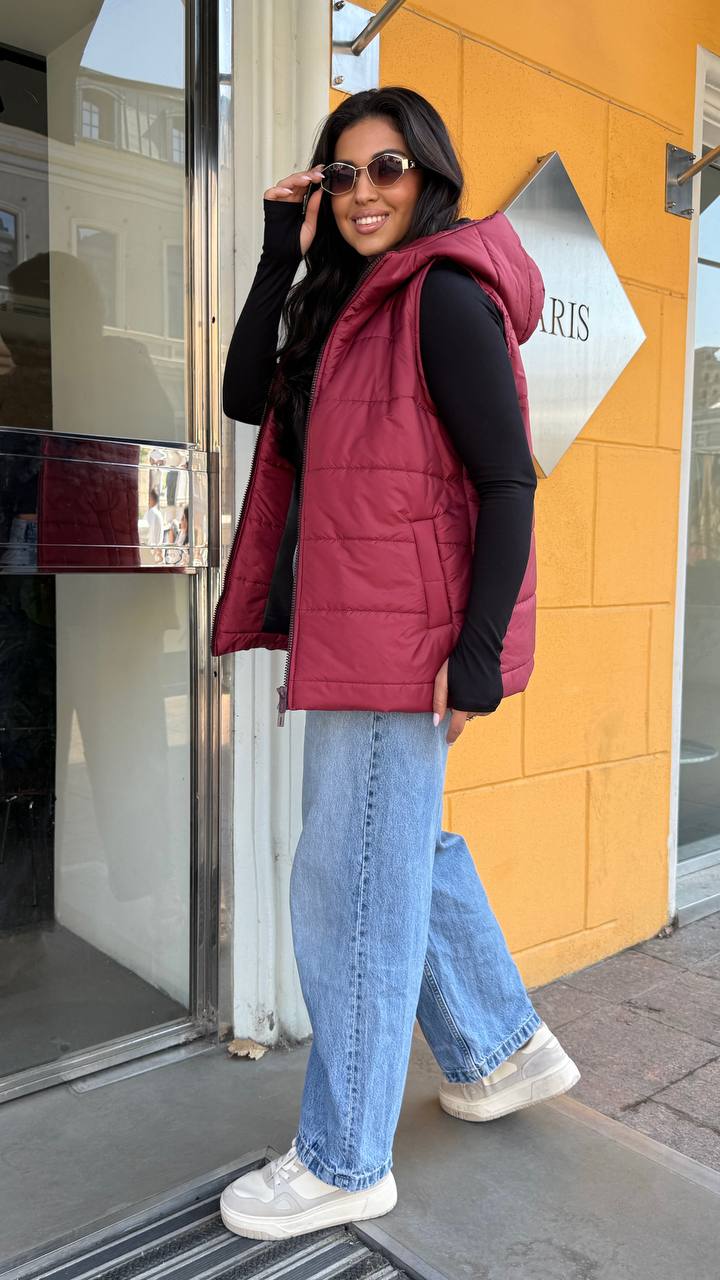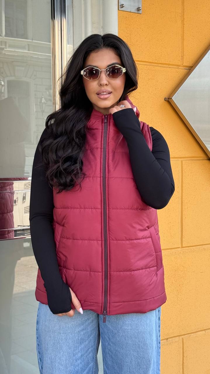 Жилет з капюшоном, на блискавці та двома кишенями, незамінний на цю пору року. Утеплений синтепоном 150. 💞Тканина : плащівка на 150 синтепоні,з підкладом. 💞Кольори: чорний,білий, вишневий, смарагдовий, шоколад. Розміри ; 44/46, 48/50, 52/54, 56/58, 60/62 Заміри виробу: 💞44/46 Довжина - 73 смсм,ОГ - 114см, ОС - 124см, 💞48/50 Довжина - 73см, ОГ - 118см, ОС - 128см, 💞52/54 Довжина - 73 см, см, ОГ - 122см, ОС - 132см 💞56/58 Довжина - 75 см,ОГ - 126см, ОС - 136см ❤️60/62. - Довжина 75 см, ОГ- 130 см, ОС - 140 см.