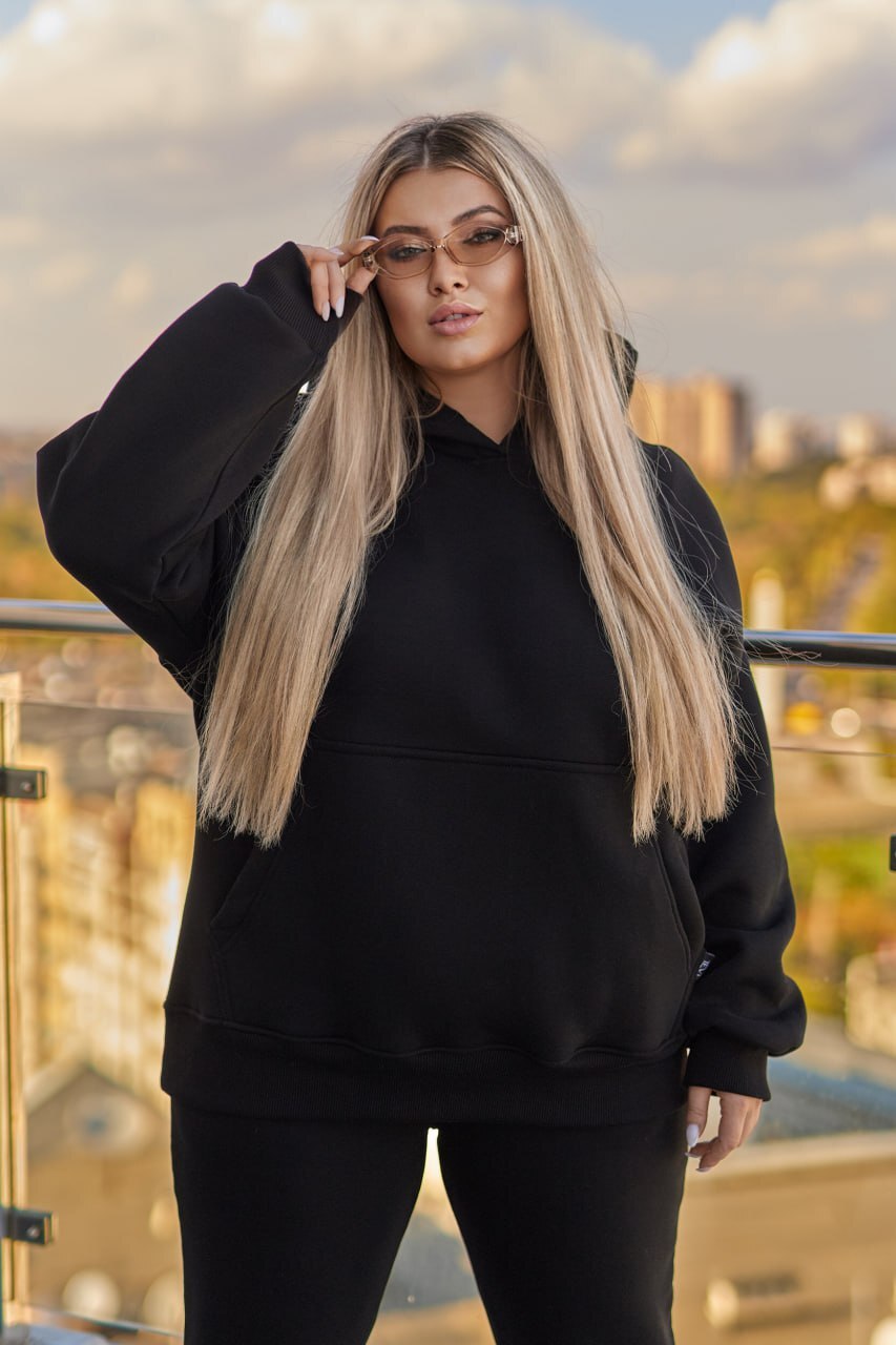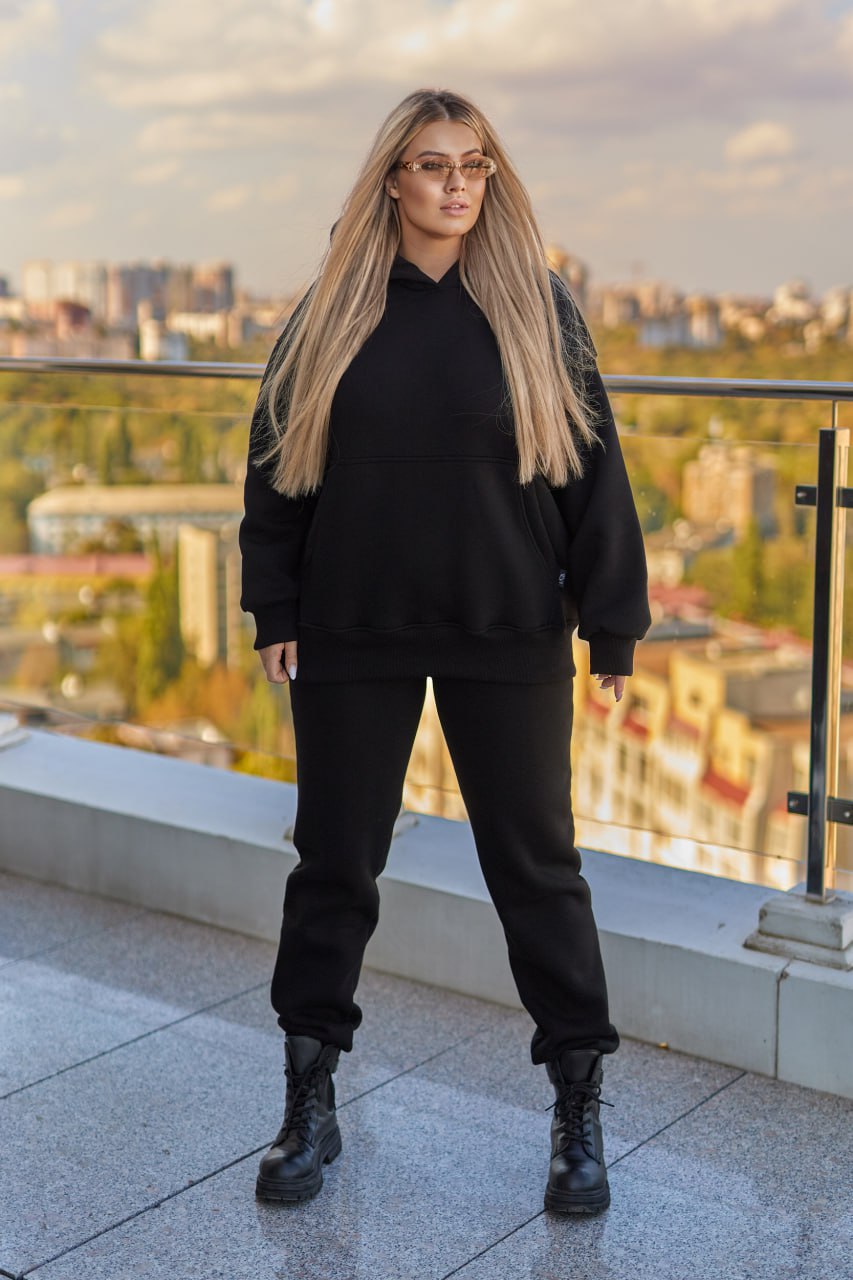 Теплий костюм з тринитки на флісі, ідеальний для холодної пори року. Найкраща якість! Ідеальний пошив! ▫️Худі: подвійний капюшон, манжети рукавів та пояса - рібана. ▫️Джоггери: висока посадка, пояс на гумці + шнурок, нижній манжет з основної тканини з гумкою, є кишені. ▫️Матеріал: турецький футер піньйе тринить з начісом, 320г щільність, 95% бавовни.