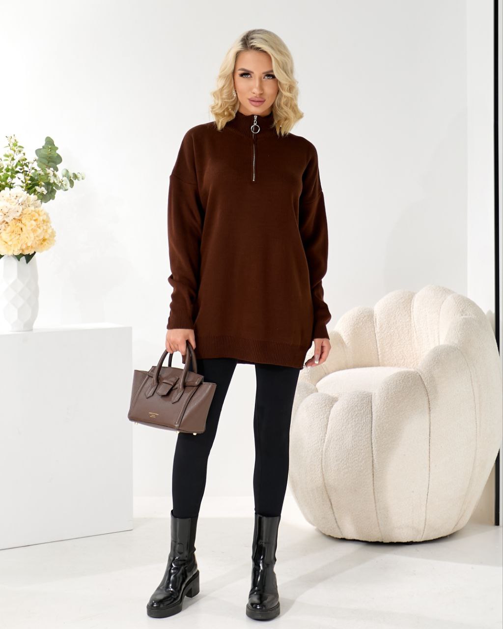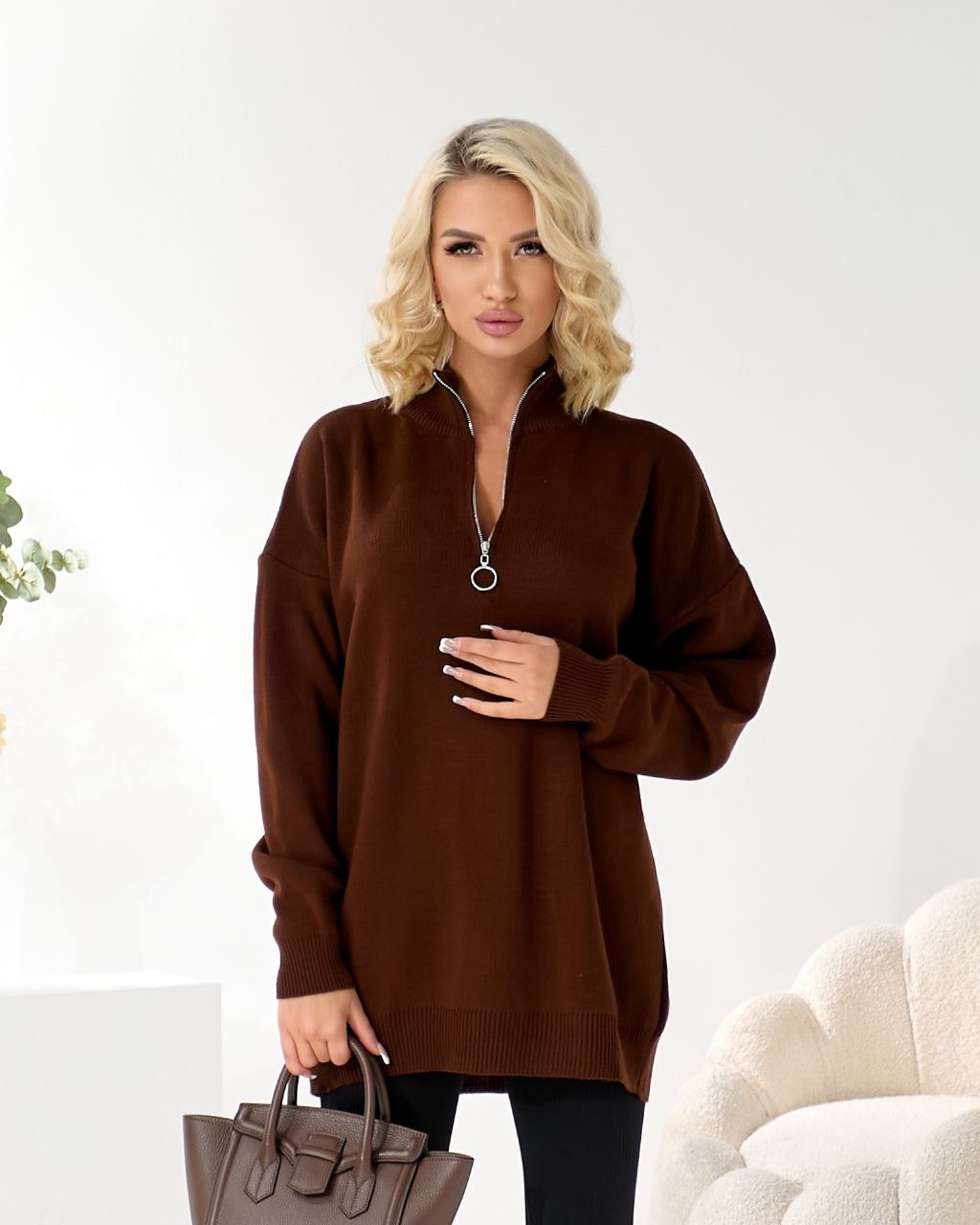 Стильний светр зі змійкою дозволяє легко міняти. Якісна турецька пряжа дозволить вам відчути максимальний комфорт. ▪️Виробництво - Туреччина ▪️В‘язка - 50% акрил, 50% котон М’який, затишний, не колеться та зберігає форму