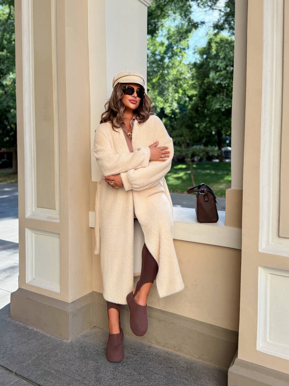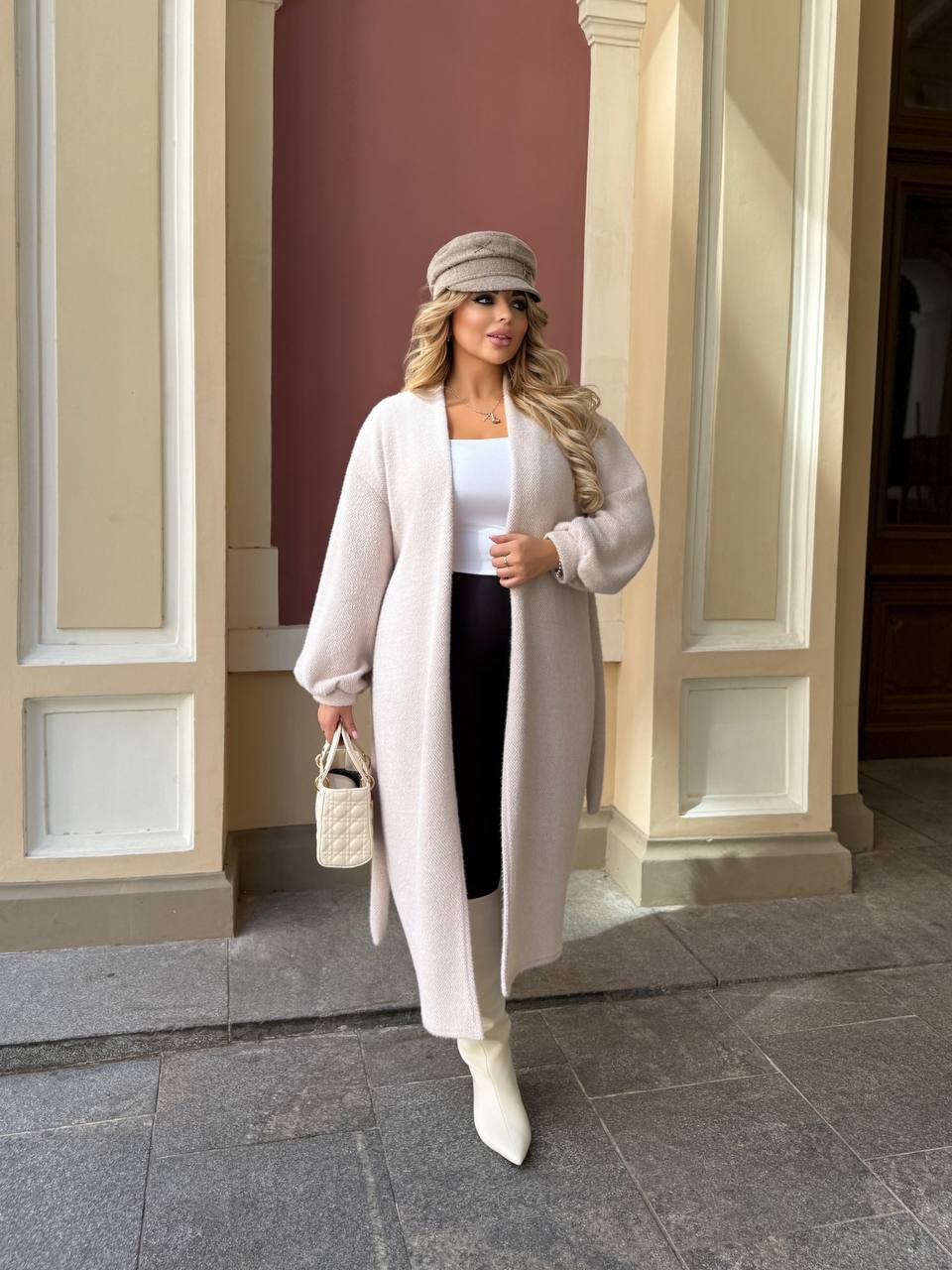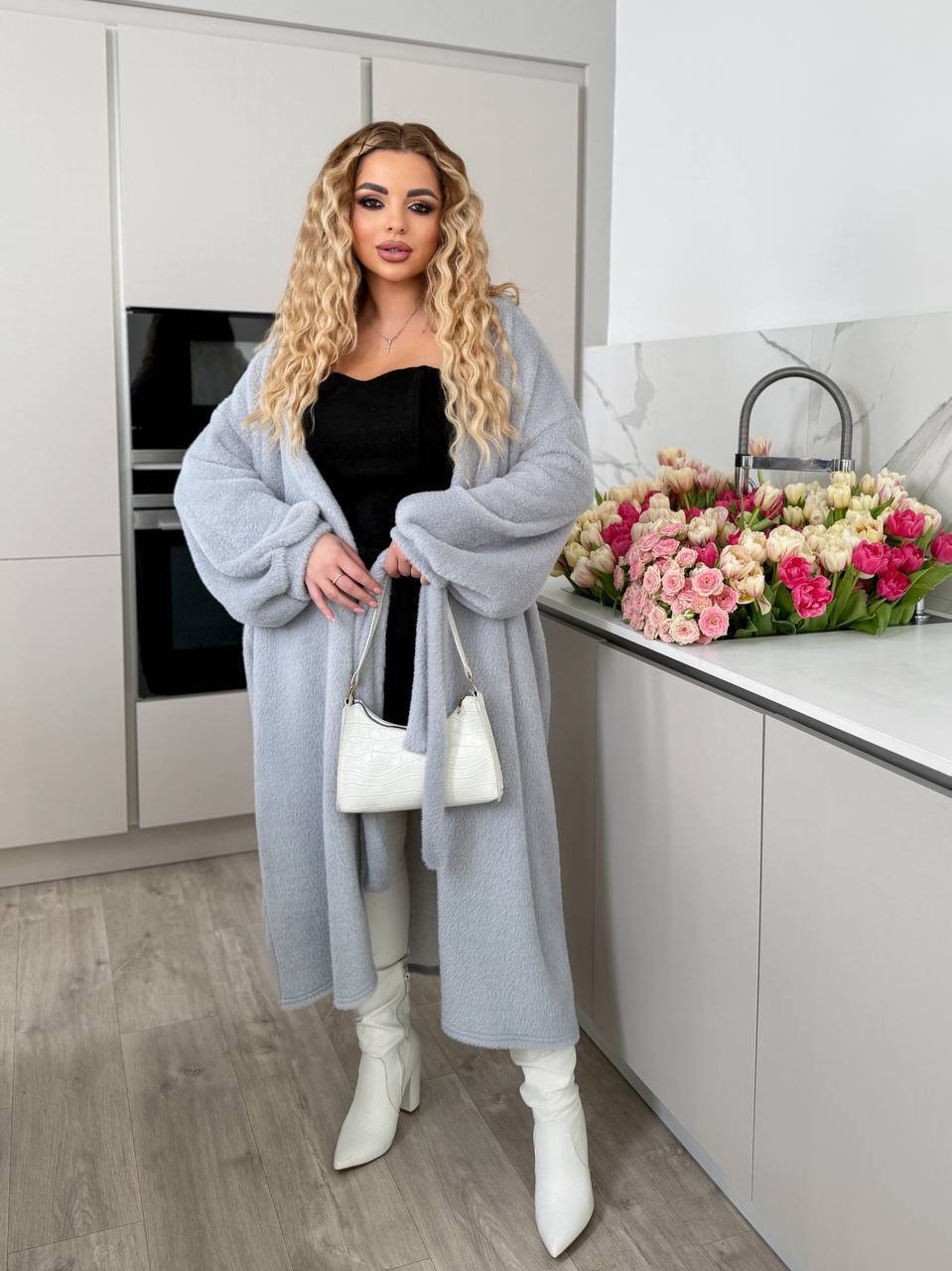 Легкий, теплий і надзвичайно стильний кардиган – він ідеально поєднується як з джинсами, так і з сукнями. Створюй образи від casual до елегантних всього одним рухом. 🧥 В’язана тканина з м’яким ворсом, що нагадує натуральну норку. Дуже теплий, неймовірно приємний на дотик — хочеться носити щодня! Ідеальний на осінь, прохолодні вечори або як стильний верхній шар. 📏 Довжина: 120 см — гарно виглядає з будь-яким взуттям, від кедів до чобіт.
